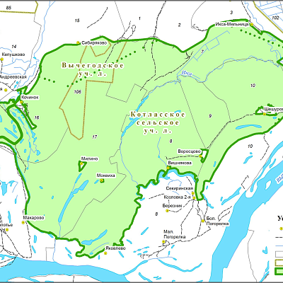 северная – от места впадения реки Ергус в реку Тулубянка, далее по левому берегу реки Ергус до автомобильного моста через реку Ергус у деревни Андреевская по южной границе полосы отвода автомобильной дороги, ведущей в деревню Андреевская, до пересечения с автомобильной дорогой общего пользования регионального значения Заболотье – Сольвычегодск – Яренск (идентификационный номер 11ОПРЗ11Р-006) и границы деревни Кочинок. Далее вдоль восточной границы деревни Кочинок, затем вдоль южной границы полосы отвода автомобильной дороги общего пользования регионального значения Заболотье – Сольвычегодск – Яренск до границы деревни Икса Мельница. Далее по южной границе деревни Икса Мельница до южной границы полосы отвода автомобильной дороги общего пользования регионального значения Заболотье – Сольвычегодск – Яренск и вдоль нее до границы города Сольвычегодска;