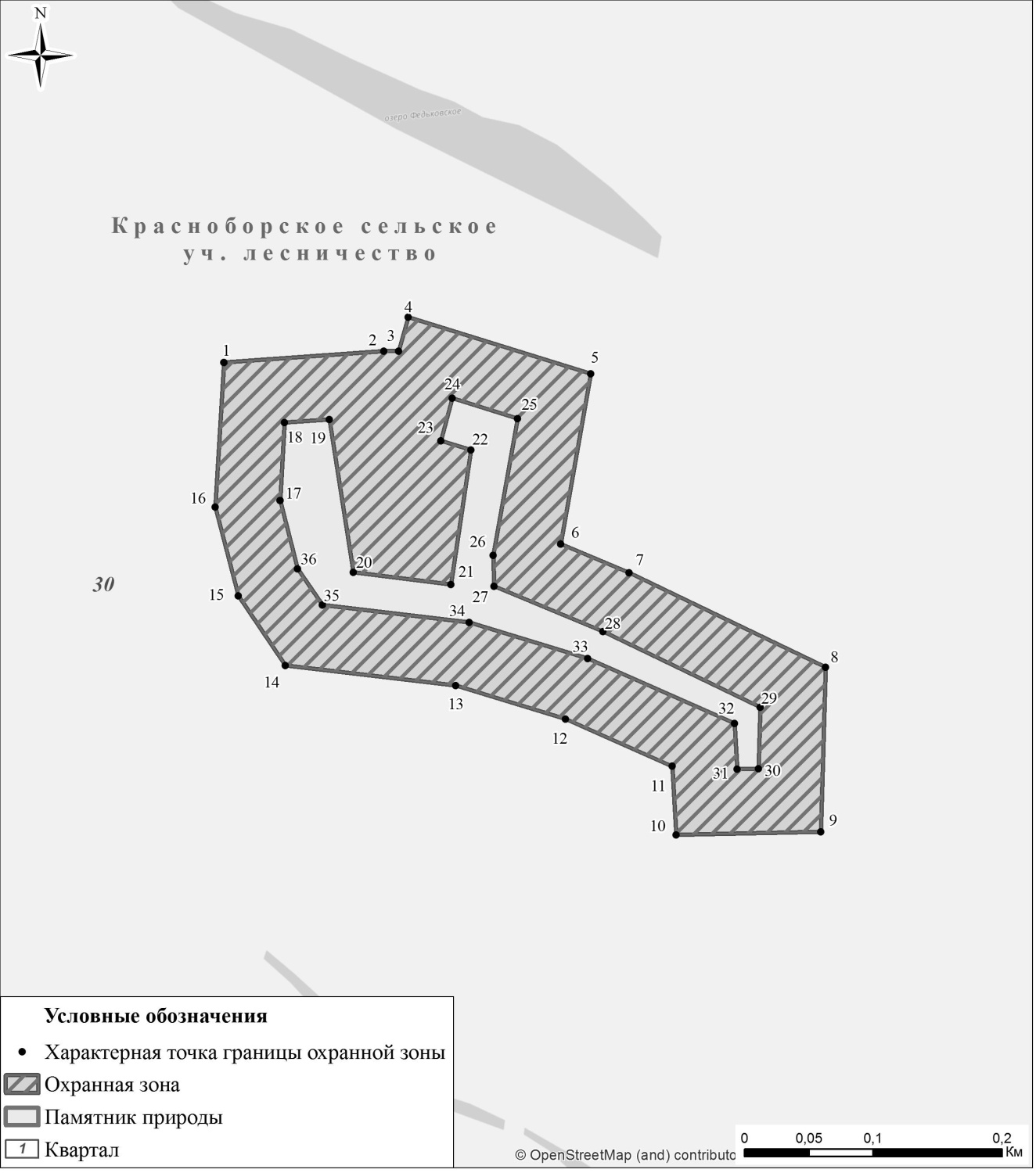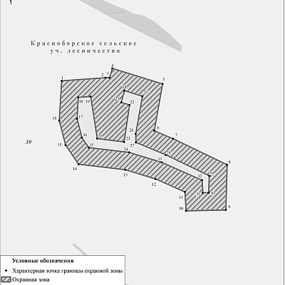Для предотвращения неблагоприятных антропогенных воздействий на памятник природы на прилегающей к нему земельных участках установлена охранная зона шириной 50 м. Внешняя граница охранной зоны проходит параллельно границе памятника природы.