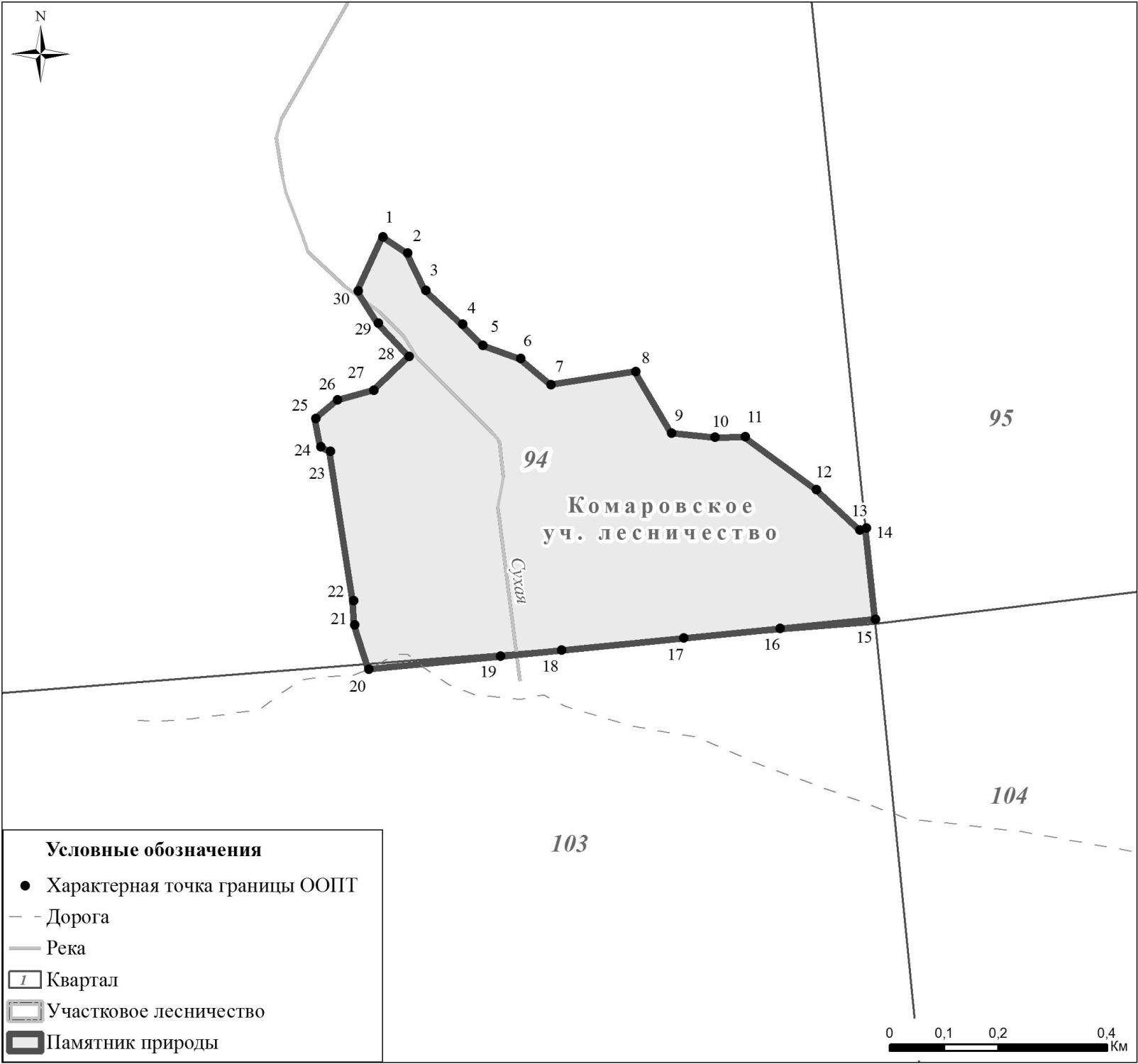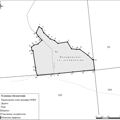 Памятник природы расположен в границах выделов 64, 73, 76, 83, 84 квартала 94 Комаровского участкового лесничества Красноборского лесничества.