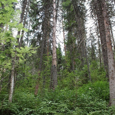 Лесная растительность представлена ельниками разных типов, относящимися к еловым лесам североевропейского типа. Естественные насаждения ели имеют сложную пространственную структуру, что обуславливает формирование разнообразных микрогруппировок и высокое разнообразие флоры. В структуре лесного покрова данной территории значительна доля ельников с хорошо развитым травянистым покровом, в частности ельников высокотравных и травяноболотных. Древостой этих насаждений разновозрастный, образован елью, в качестве примеси встречаются береза пушистая и осина. Естественные насаждения ели с примесью березы и сосны находятся вблизи источника «Двенадцать ключей», обладают большим рекреационным потенциалом, имеют оздоровительное значение, массово посещаются местным населением и отдыхающими лечебно-профилактического учреждения санаторий «Солониха».