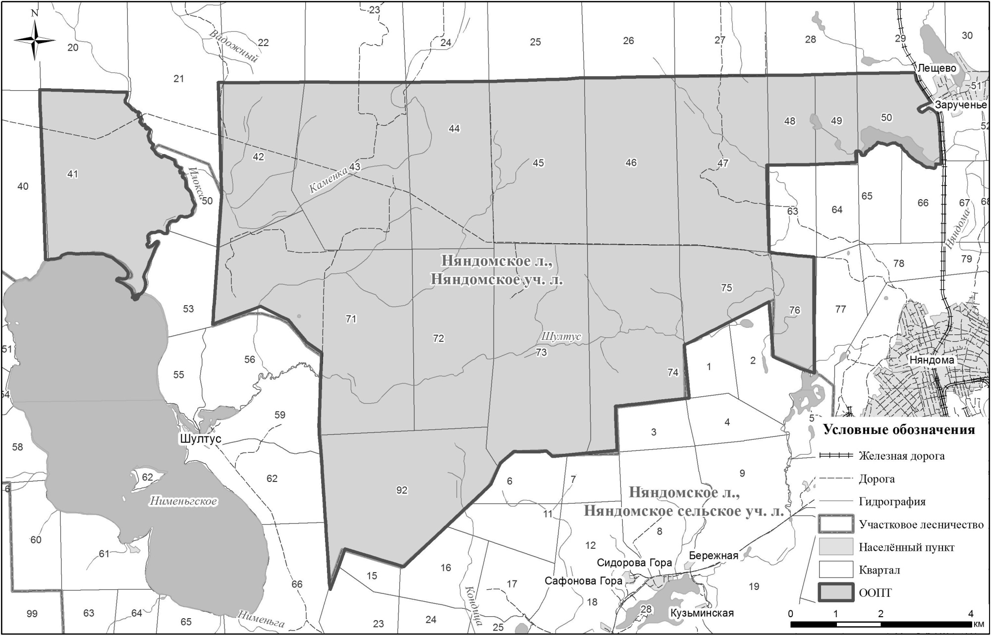 транспортных средств граждан и организаций в период устойчивого снежного покрова по дороге, проходящей на запад по северным границам кварталов 76-73, далее через кварталы 44-42 в 21 и 22 квартал, далее через квартал 21 и квартал 41 в квартал 40 участка Няндомское Няндомского участкового лесничества Няндомского лесничества;