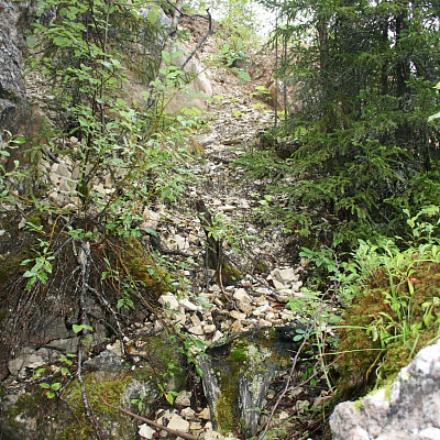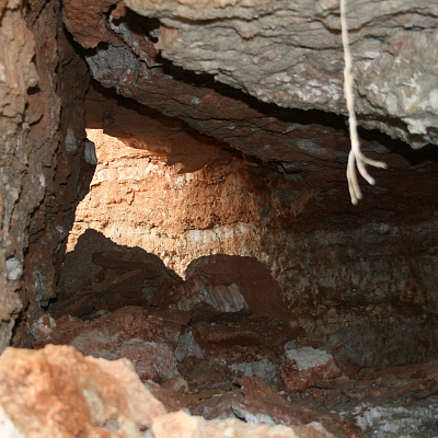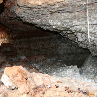 Пещера К-5 имеет 2 выхода, которые разделены расстоянием около 5 м и представляют собой низкие широкие щели в основании обнажения. Основной (северный) ход ведет в небольшой зал обвального типа, из которого расходятся несколько щелевидных ходов. Через узкий коридор можно попасть в правую часть пещеры, где находится большой обвальный зал.