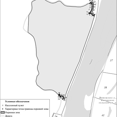 - восточная - от впадения безымянного ручья в реку Пинегу вниз по течению реки Пинеги до впадения в нее Пехоровского ручья;