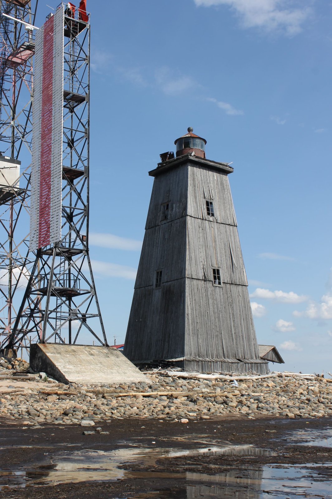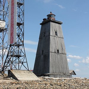Кроме маячной башни были возведены две деревянные створные башни — Белая и Черная. Белая башня простояла до тридцатых годов ХХ века, когда она была разрушена при подмыве берега. Черная же стоит на южной оконечности острова до сих пор.