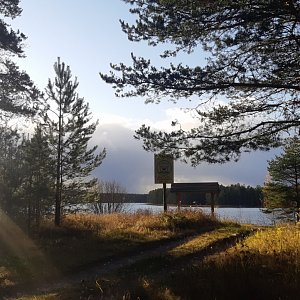 На середине пути можно увидеть результат лесовосстановительных работ - здесь ровными рядами подрастают лесные культуры сосны. А в конце Вас ждет завораживающий вид на озеро и уединенное место для бердвотчинга (от англ. Birdwatching - наблюдение за птицами). Ведите себя тихо и осторожно, тогда возможно Вы испытаете удачу и найдете дом черного дятла. -