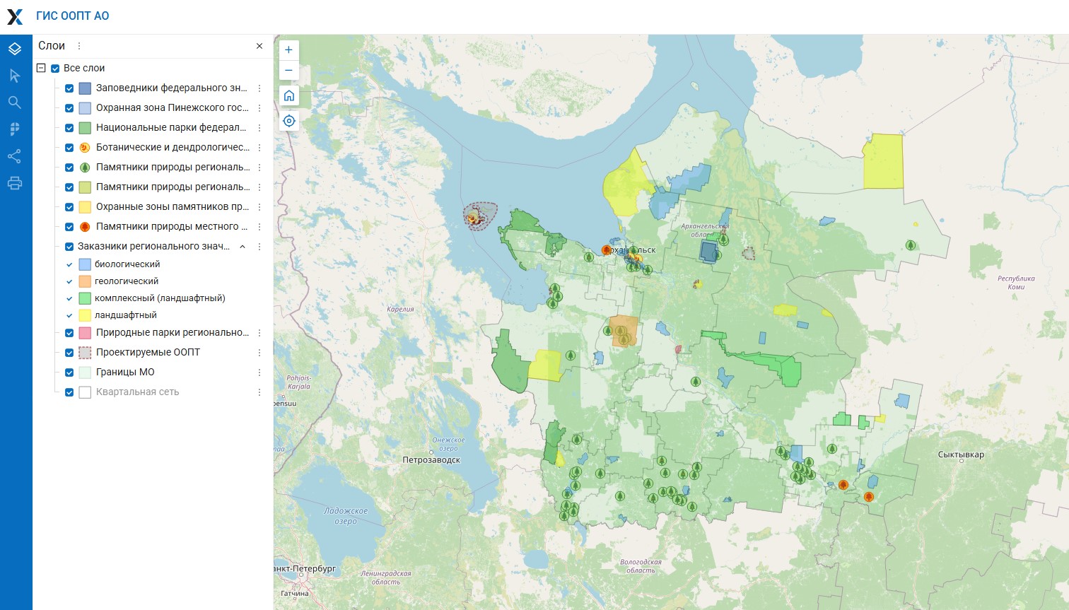 - Геоинформационная система «Особо охраняемые природные территории (ООПТ) Архангельской области».
