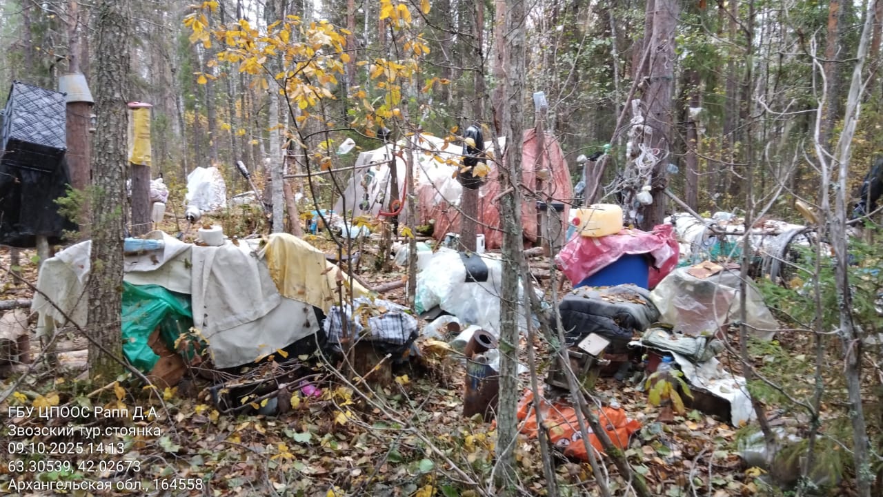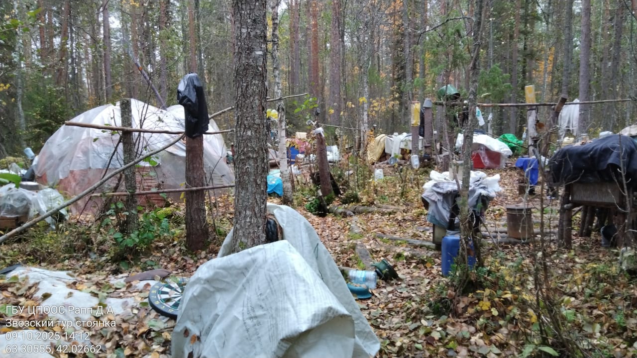 В ходе планового наземного патрулирования Звозского природного парка регионального значения 9 октября 2025 года государственный инспектор в области охраны окружающей среды Дмитрий Анатольевич Рапп обнаружил несанкционированную туристическую стоянка. О нахождении стоянки в природном парке инспектору удалось узнать у местного жителя, который сообщил что она часто используется нарушителями.