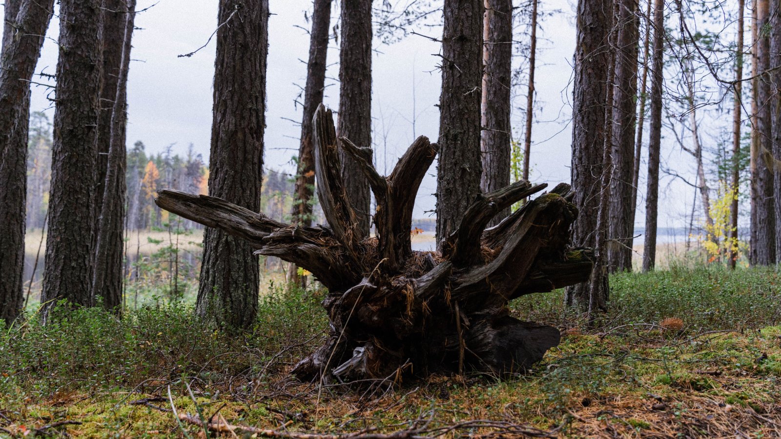 Первые признаки осени появляются в лесах уже в конце августа. Листва берёз и осин начинает желтеть, а могучие ели и сосны становятся ещё более тёмным, контрастным фоном для этого яркого убранства. Воздух наполняется прохладой и особым терпким ароматом опавшей листвы и влажной хвои.
