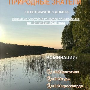 Уже по доброй традиции приглашаем принять участие в областном экологическом конкурсе «Природные знатели», посвященный юбилейным датам региональных природных заказников. В этом году это: Сольвычегодский, Селенгинский, Сурский, Монастырский, Филатовский, Клоновский, Яренский, Шултусский биологические заказники.
