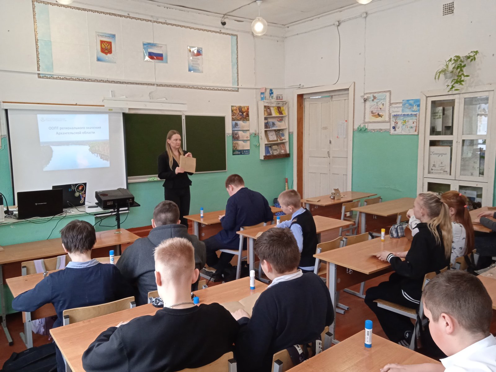 Гостями образовательного учреждения стали специалисты ГБУ АО «Экоцентр». Для учеников 3, 4, 6 и 8 классов организовали интерактивные лекции и практические мастер-классы. Специалисты рассказали школьникам об особо охраняемых природных территориях Архангельской области, уделив особое внимание работе фотоловушек, установленных в Пермиловском государственном природном геологическом заказнике регионального значения. Ребята с интересом угадывали животных, попавших в объектив скрытых камер, и посмотрели видеоролик с уникальными кадрами с фотоловушек.